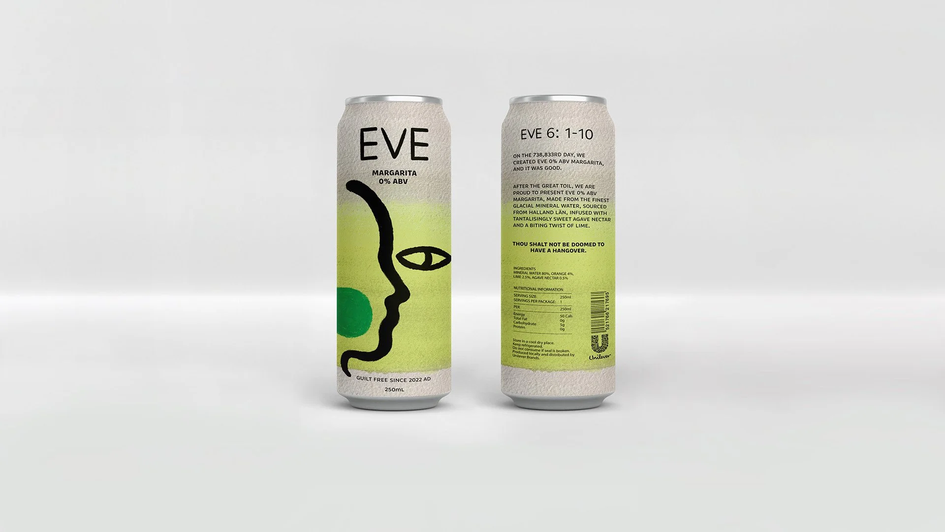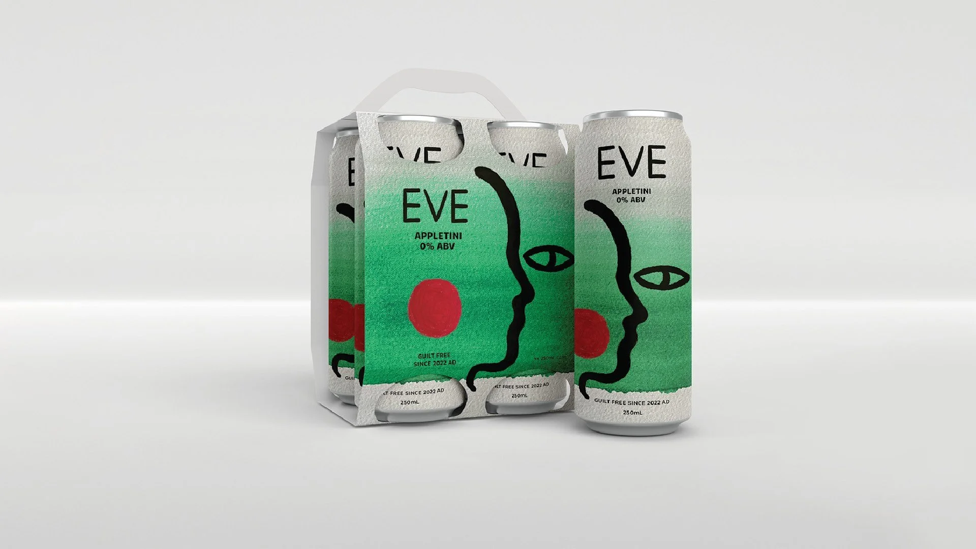 The brand identity 'Eve' plays off the biblical association with guilt and temptation. The packaging design uses fresh, bright colours to invoke the cocktail flavour profiles, whilst the bold illustrations and tone of voice give the brand a sense of 'guilt free' fun. The rough, hand drawn finishes to the illustrations and brand name give a contemporary crafted feel.