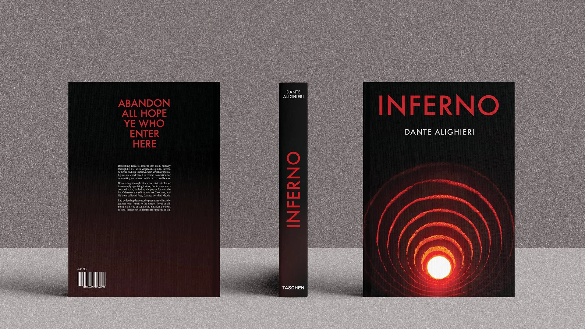 A new book cover design for Dante's epic 14th Century poem 'Inferno'. With Virgil as his guide, Dante journeys down through the nine circles of hell; each circle reserved for the doomed souls who have committed ever more grievous crimes against God.